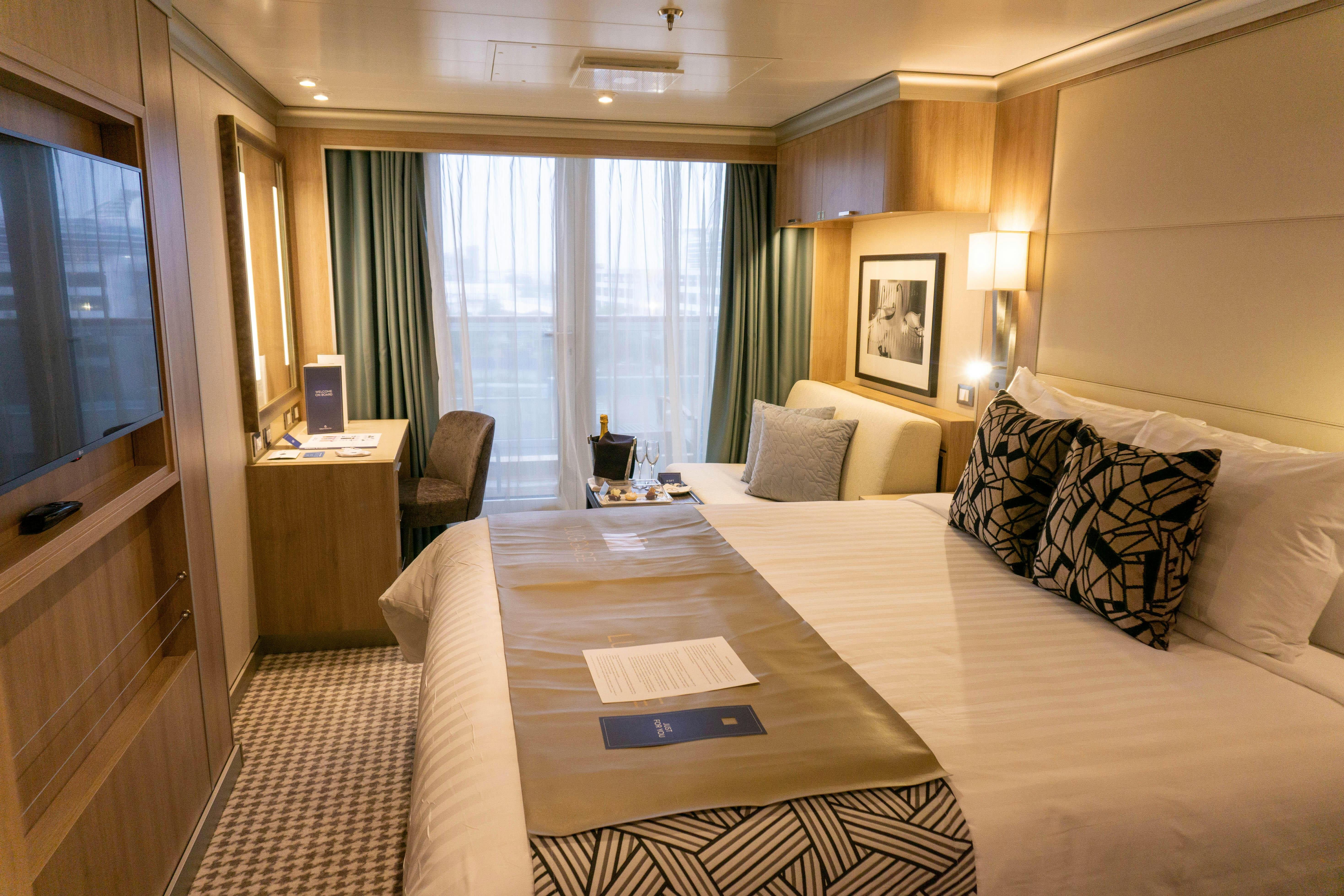 The most popular cabins are 748 Verandah Staterooms, which, depending on location, can range from 228- to 420-square-feet. The balconies are wide enough to comfortably seat two and in some parts of the ship, at points where the superstructure buttresses outward around the lifeboat recesses, are much larger.